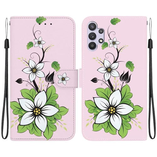Funda para Teléfono Samsung Galaxy A32 4G Cuero Dibujo Coloreado Textura de Cristal (Lirio)