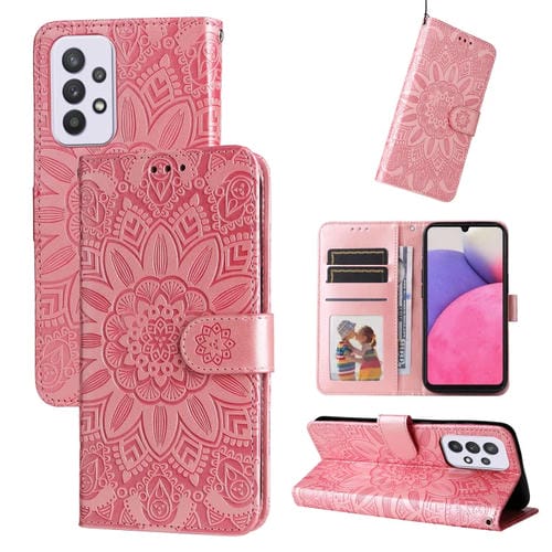 Estuche para Teléfono Samsung Galaxy A33 5G Cuero Estampado Girasol (Rosa)