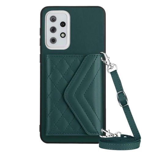 Funda para Teléfono Samsung Galaxy A33 5G con Bolsa para Tarjetas Rfid Textura Rómbica Cordón Largo (Verde)