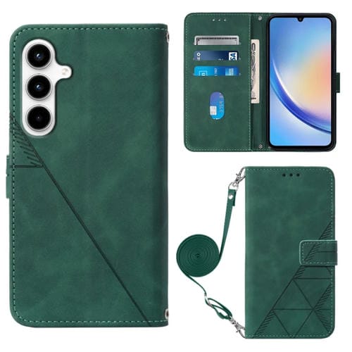 Funda para Samsung Galaxy A35 5G Crossbody Cuero con Tapa en Relieve 3D (Verde Oscuro)