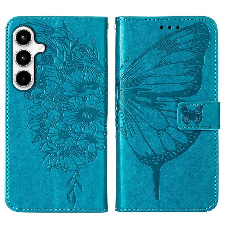 Funda para Samsung Galaxy A35 5G Cuero Mariposa en Relieve (Azul)