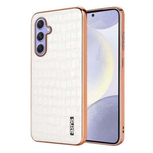 Estuche para Teléfono Samsung Galaxy A35 Azns Textura Cocodrilo Marco Galvanizado (Blanco)
