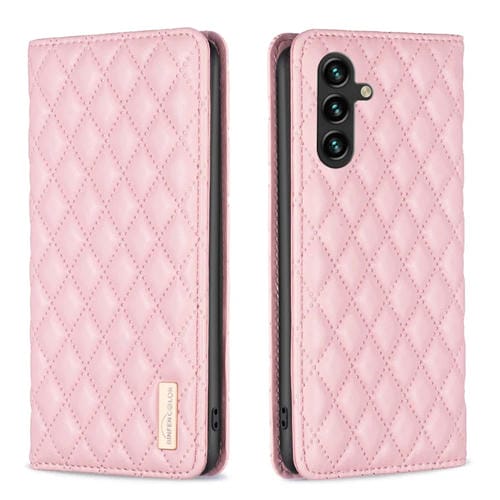 Funda para Teléfono Samsung Galaxy A35 Diamond Lattice con Tapa de Cuero Magnético (Rosa)