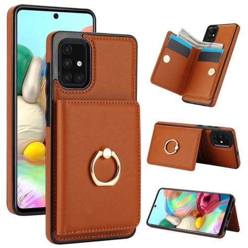 Estuche para Teléfono Samsung Galaxy A51 4G Rfid Tarjeta Antirrobo con Soporte para Anillo (Marrón)