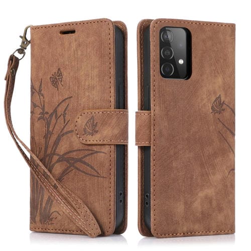 Funda para Teléfono Samsung Galaxy A53 Cuero Relieve Mariposa Orquídea (Marrón)