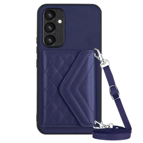 Funda para Teléfono Samsung Galaxy A54 5G Rfid con Bolsa para Tarjetas Textura Rómbica y Cordón Largo (Púrpura Oscuro)