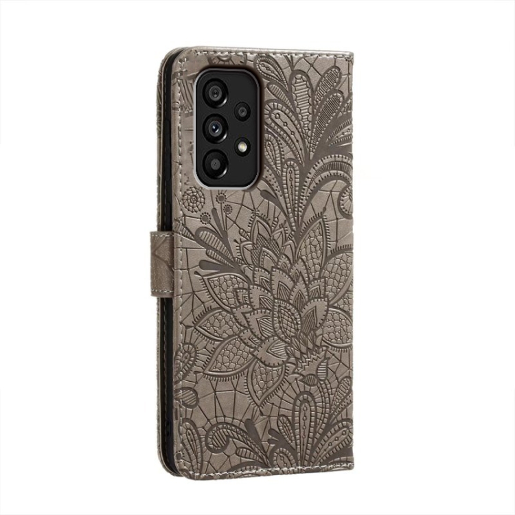 Para Samsung Galaxy A54 5G Lace Flower Relieve Flip Funda de cuero para teléfono (Gris)