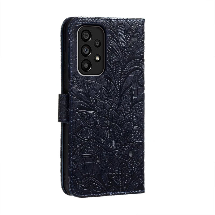 Para Samsung Galaxy A54 5G Lace Flower Relieve Funda de cuero con tapa para teléfono (Azul oscuro)
