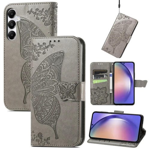 Funda para Teléfono Samsung Galaxy A55 5G Cuero Relieve Flor de Amor y Mariposa (Gris)