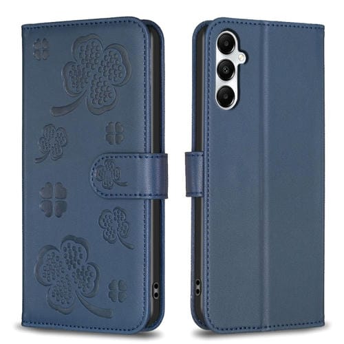 Funda de Cuero Samsung Galaxy A55 con Relieve de Cuatro Hojas (Azul)