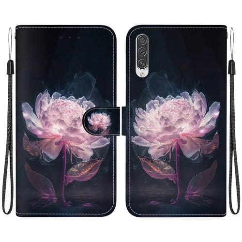 Funda para Teléfono Samsung Galaxy A70 A70S Cuero Dibujo Coloreado Textura Cristal (Peonía Púrpura)