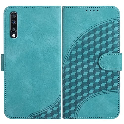 Funda de Cuero Samsung Galaxy A70 Yx0060 Relieve Cabeza de Elefante con Cordón (Azul Claro)