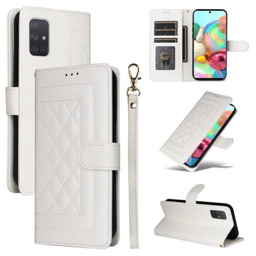 Estuche para Teléfono Samsung Galaxy A71 con Tapa de Cuero Diamond Lattice (Blanco)