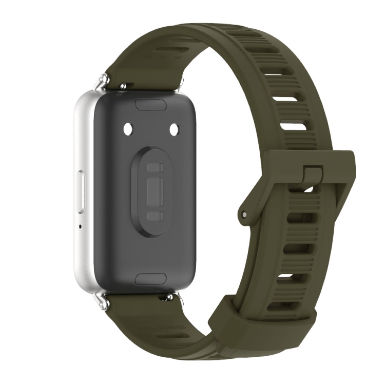 Correa de Silicona Mijobs para Samsung Galaxy Fit 3 con Orificio Plano (Verde Caqui + Plateado)