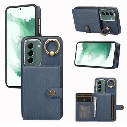 Funda de Teléfono Samsung Galaxy S22+ 5G Textura Cepillado Soporte para Anillo (Azul)