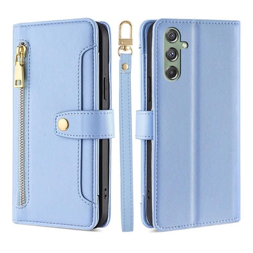 Funda de Cuero Samsung Galaxy M34 5G F34 5G Lite con Billetera y Cremallera (Azul)