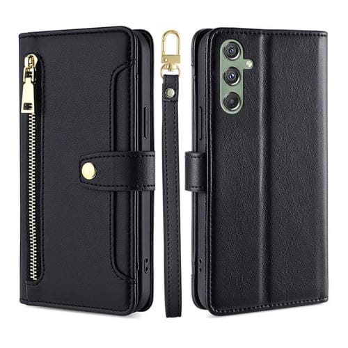 Funda de Cuero para Samsung Galaxy M34 5G y F34 5G Lite con Billetera y Cremallera Cuerpo Cruzado Textura de Oveja (Negro)
