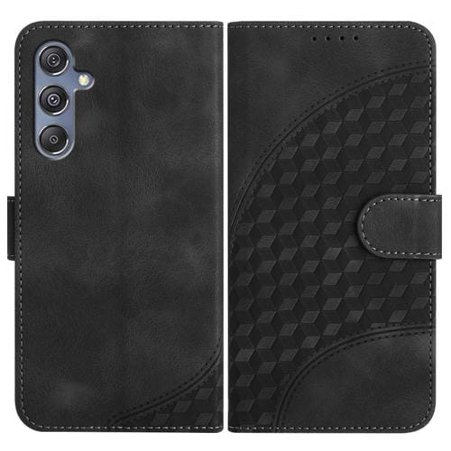 Funda para teléfono Samsung Galaxy M34 Yx0060 de cuero con relieve y cabeza de elefante con cordón (Negro)