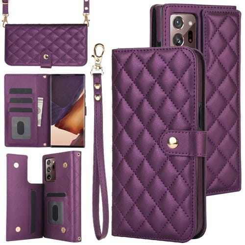 Estuche para Teléfono Samsung Galaxy Note20 Ultra Crossbody de Cuero Rómbico Multifunción (Púrpura Oscuro)
