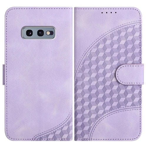 Funda para Samsung Galaxy S10E Yx0060 de Cuero con Relieve de Cabeza de Elefante y Cordón (Púrpura Claro)