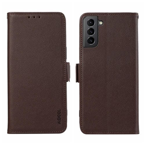 Funda para Teléfono Samsung Galaxy S21 5G Abeel Cuero Rfid Patrón Litchi Magnético Lateral (Marrón)