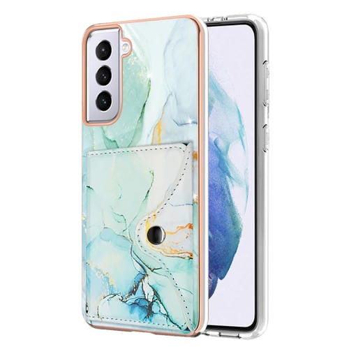 Estuche para teléfono Samsung Galaxy S21 5G con ranura para tarjeta IMD patrón de mármol (Verde)