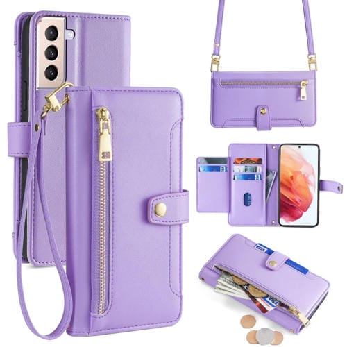 Funda para Samsung Galaxy S21 5G Lite Cuero con Billetera Cremallera Cuerpo Cruzado Textura de Oveja (Púrpura)