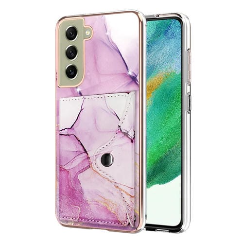 Estuche para Teléfono Samsung Galaxy S21 FE 5G con Ranura para Tarjeta Imd Patrón de Mármol (Oro Rosa Púrpura)