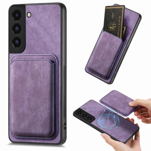 Funda de Teléfono Samsung Galaxy S22 + 5G Magnética con Bolsa de Tarjeta de Cuero Retro (Púrpura)