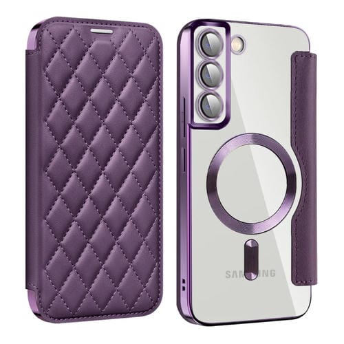 Funda de Teléfono Samsung Galaxy S22 + 5G Shield Magsafe Rfid Cuero con Rombos Antirrobo (Púrpura)