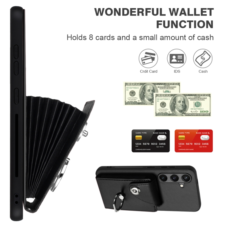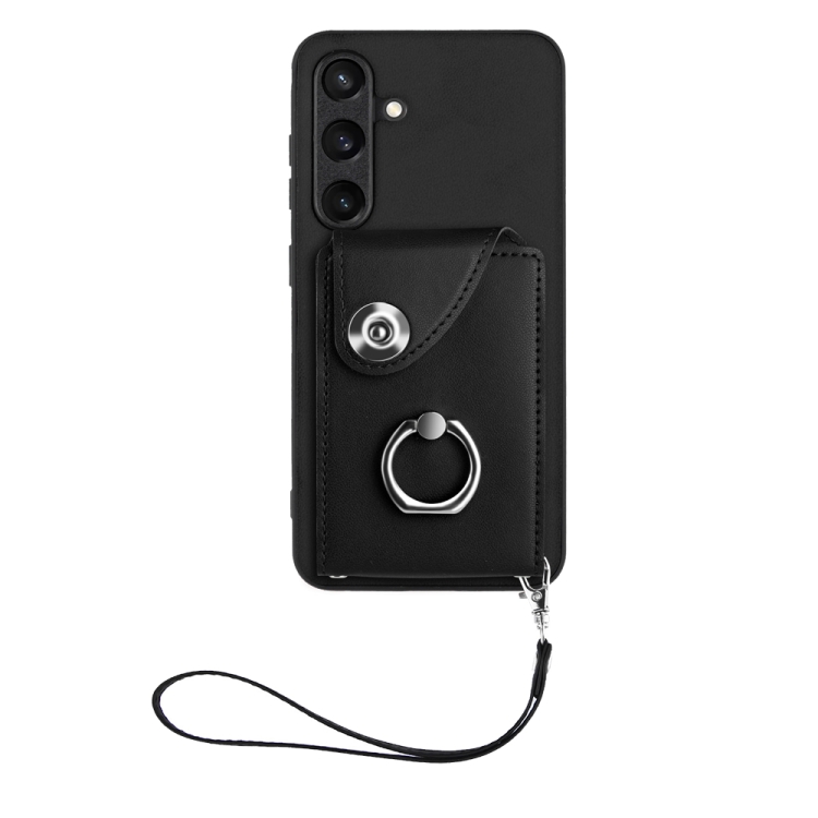 Bolsa para Tarjeta Samsung Galaxy S24 5G Soporte para Anillo Funda de PU con Cordón (Negro)