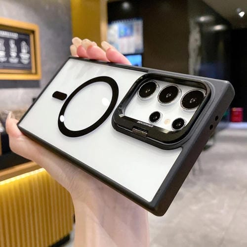 Estuche para Teléfono Samsung Galaxy S24 Ultra 5G Magsafe con Soporte de Marco de Lente de Metal (Negro)