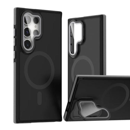 Estuche para teléfono Samsung Galaxy S24 Ultra 5G Magsafe con película de lente y soporte plegable (Gris)