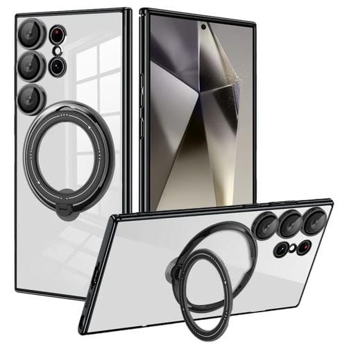 Estuche para Teléfono Samsung Galaxy S24 Ultra Galvanoplastia Magsafe Soporte Rotación 360 Grados (Negro)