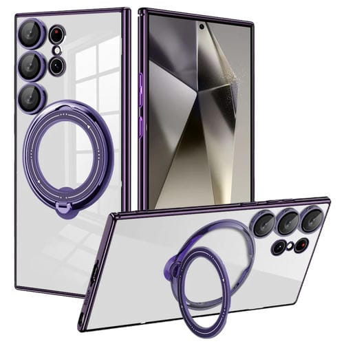 Estuche para Teléfono Samsung Galaxy S24 Ultra Galvanoplastia Magsafe Soporte Rotación 360 Grados (Púrpura Oscuro)