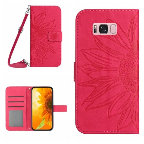 Funda Flip de Cuero Samsung Galaxy S8 Skin Feel Sun Flower Pattern con Cordón (Rose Red)