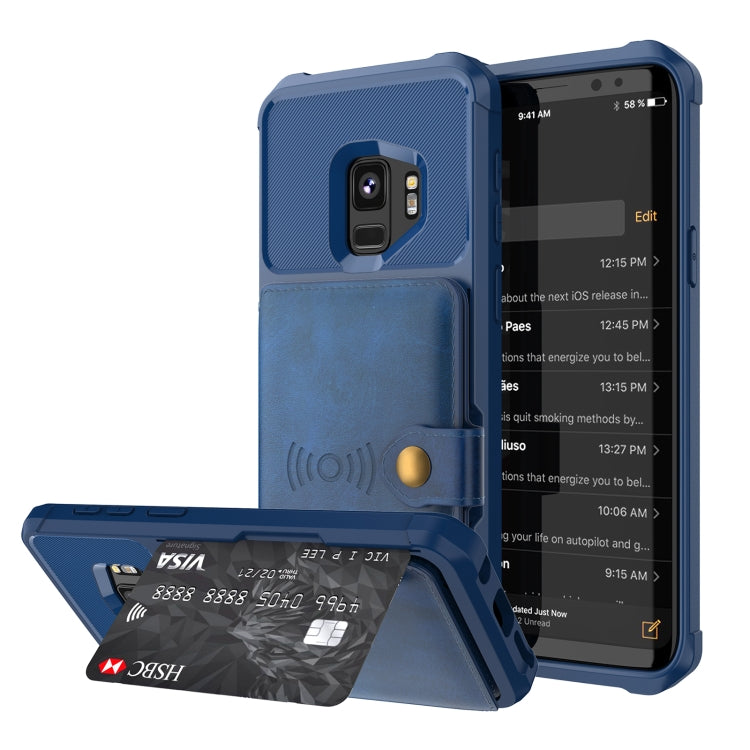 Para Samsung Galaxy S9 Magnético Bolsa de Tarjeta Tarjeta de cuero Funda telefónica (azul marino)