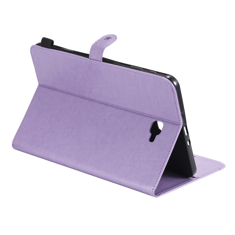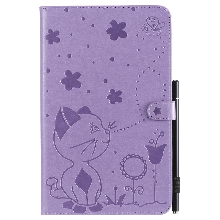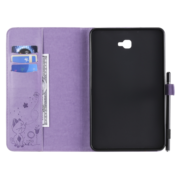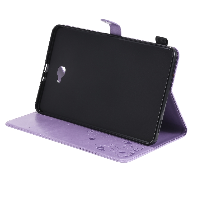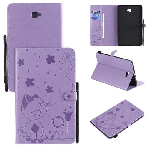 Funda Protectora Samsung Galaxy Tab A10.1 T580 Cuero Patrón Abeja Gato con Soporte y Ranuras (Púrpura)
