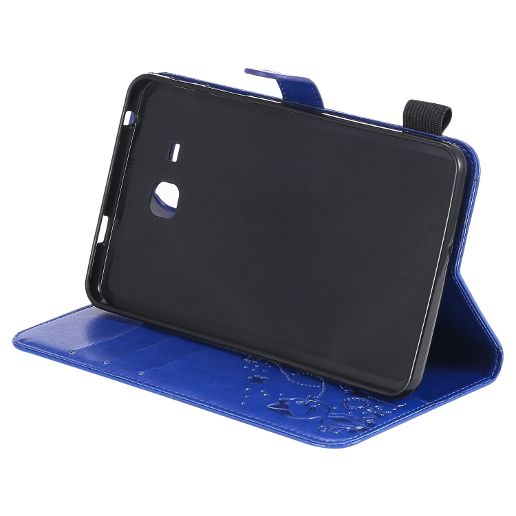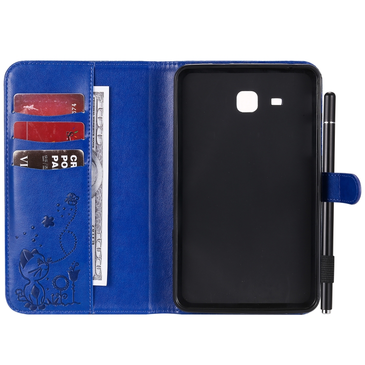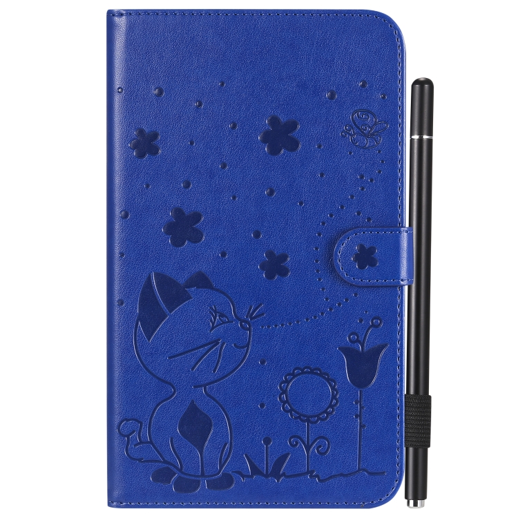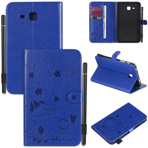Funda Protectora de Cuero Samsung Galaxy Tab A7.0 T280 Estampado Abeja Gato Soporte Ranuras Tarjetas (Azul)