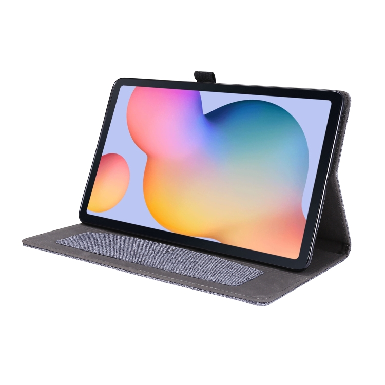Funda Protectora para Samsung Galaxy Tab S6 Lite Cuero TPU Tela PU Tapa Horizontal Clip para Tarjeta (Gris)