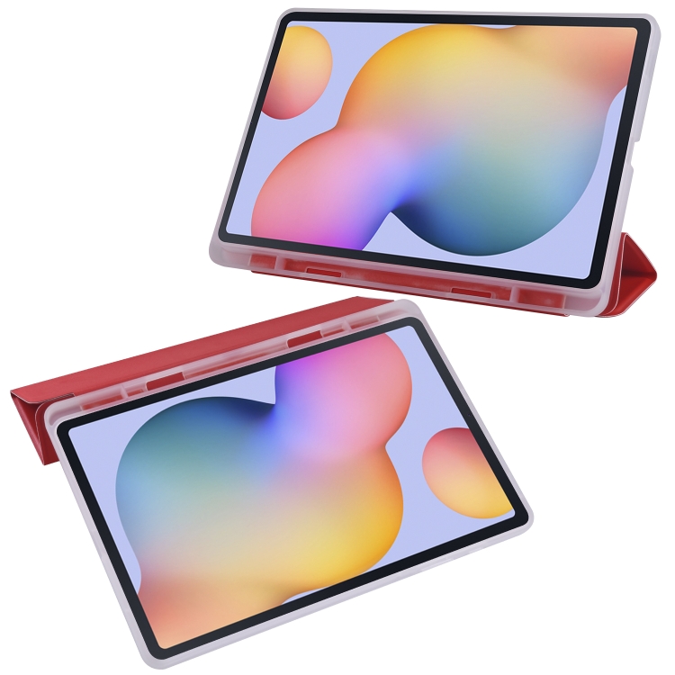 Funda para Tablet Samsung Galaxy Tab S6 Lite P610 3-Plegable Horizontal Flip PU Leather TPU Rojo