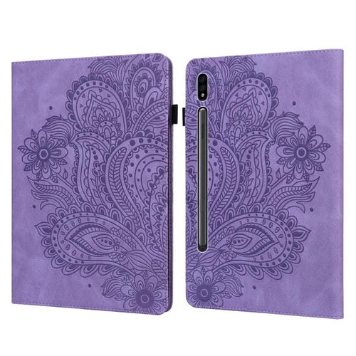 Estuche para Tablet Samsung Galaxy Tab S9 Cuero Estampado Pavo Real (Púrpura)