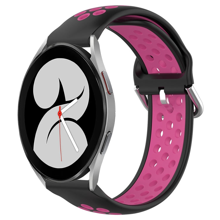 Banda de Reloj de silicona para Samsung Galaxy Watch 4 40mm 20mm deportiva transpirable perforada (Negro + Rojo Rosa)
