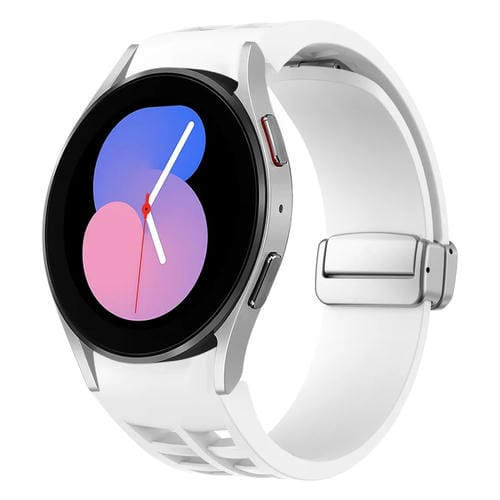 Correa de Silicona para Samsung Galaxy Watch 5 40/44mm con Hebilla Plateada Plegable Magnética (Blanco)