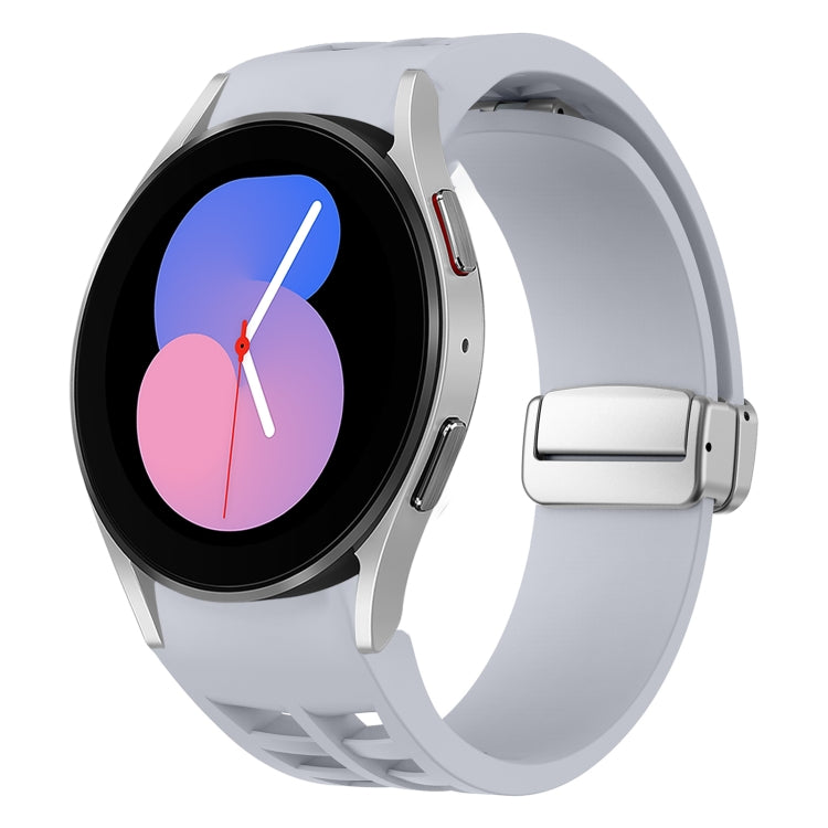 Correa de Reloj para Samsung Galaxy Watch 5 40/44mm Richard Silicona con Hebilla Plateada Plegable Magnética (Gris Claro)