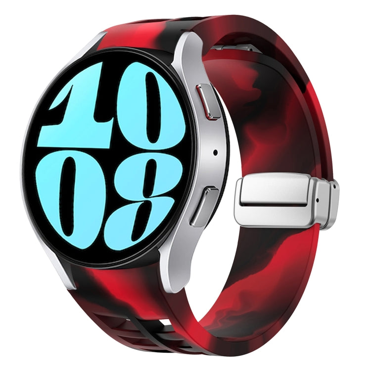 Correa de Silicona para Samsung Galaxy Watch 6 40/44mm con Hebilla Plateada Plegable Magnética (Camuflaje Rojo Negro)