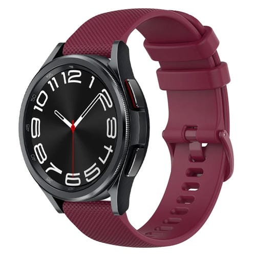 Banda de Reloj de Silicona a Cuadros para Samsung Galaxy Watch 6 Classic 47mm 20mm (Rojo Vino)
