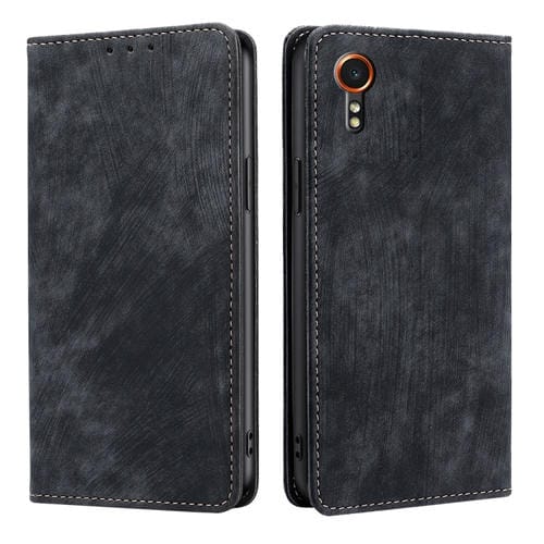 Estuche para Teléfono Samsung Galaxy Xcover 7 5G Cuero Magnético con Cepillo Antirrobo (Negro)