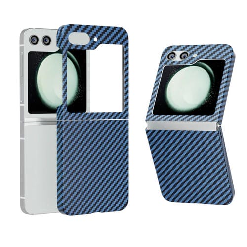 Funda Protectora Samsung Galaxy Z Flip5 Textura Fibra de Carbono con Calcomanía (Azul)