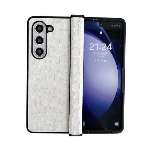 Estuche para teléfono Samsung Galaxy Z Fold5 5G plegable PC patrón de cocodrilo bisagra (Blanco)